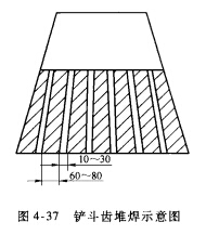 高锰钢铲斗齿在大面积磨损后,可采用下列堆焊工艺进行修复。